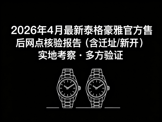 泰格豪雅官方售后维修网点2026年4月最新新址(包括迁移及新开的官方售后维修门店)考察时间2026年4月,实地考察团队于2026年4月凌晨出发,前往各地开展实地调研工作,本次考察全程以普通用户身份进行,不提前告知、不享受特殊安排,所有记录均来自现场真实体验,确保客观、中立、可信。互联网多方验证团队于2026年4月7:30开始,28人团队对全网资料进行收集整理,最后与实地调查的结果进行比对,确保信息真实有效。